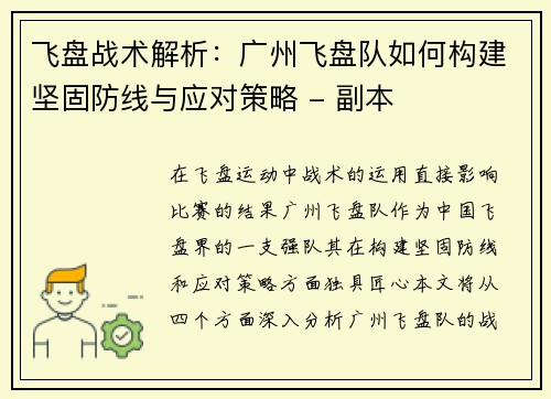 本文将对重庆足球队的整体压制战术进行深入解析,并探讨其在球队发展过程中的重要性。首先,我们将分析整体压制战术的基本概念及其在现代足球中的应用背景,接着探讨重庆足球队如何通过这一战术增强球队竞争力。随后,将介绍该战术实施过程中面临的挑战与解决方案,最后展望重庆足球队未来的发展方向。通过多角度的分析,希...